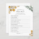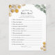 Brautparty-Spielkarte mit Aquarell, Eukalyptusgrün und Bienen, um der Golden Bee Collection zu entsprechen. Eine unterhaltsame Art, mit Duschgästen zu interagieren. Wer kennt die Braut am besten?