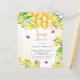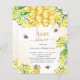 Stilvoll weiß und goldfarben, das Wasser ist gefliest. Mit Hummeln dekoriert, Honig und Honigwabenmilch mit gelben Blumen, Blume und Honiggläsern geschmückt. Mit dem Text: Babydusche geschrieben mit einem modernen handgeschriebenen Stil. Personalisieren und fügen Sie den Namen der Mutter zu sein. Goldene und schwarze Buchstaben. Geschlechterneutral.