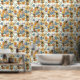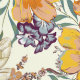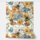 Dieses lebendige Kunstwerk besticht durch eine lebendige Komposition aus Hummeln und faszinierenden Blume in voller Blüte. Die Blumenelemente, die in satten Orange-, Blau- und Gelbtönen gehalten sind, bilden einen farbenfrohen Wandteppich, der wunderbar mit den detaillierten Abbildungen der Bienen kontrastiert. Der cremige Hintergrund verstärkt die Lebendigkeit der Blume und die Dynamik der lebhaften Bienen, was zu einem lebendigen und ansprechenden Muster führt, das die Harmonie der Natur zelebriert.