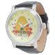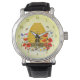 Uhr, Vintage Männeruhr mit schwarzem Lederarmband