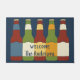 Herzlich willkommen auf Ihrer Zuhause und zeigen Sie Ihre Liebe, mit dieser personalisierten Türmatte gleichzeitig Bier zu trinken. Die Matte zeigt Abbildungen von fünf verschiedenen Bierflaschen. Der Etikettenbereich auf der Vorderseite ist bereit, mit einem Namen in blauer Schrift personalisiert zu werden.