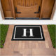 Big Black and White Bold Monogram Letter Doormat ist das ideale Set, um Ihre Gäste zu empfangen. Das minimalistisch-moderne Design mit einem anpassbaren schwarzen Hintergrund und einem weißen Rahmen. Ihr Monogramm-Initial befindet sich in großer, fett weißer Schrift in der Mitte.