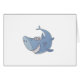 Ein blauer Cartoon mit einem großen Lächeln und großen Zähnen.