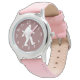 Kinderuhr aus Edelstahl mit rosa Lederarmband
