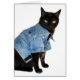 Schwarze Katze in blauer Jacke, hart aussehen