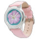 Kinderuhr aus Edelstahl mit rosa Lederarmband