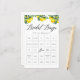 Fügen Sie Ihrem Brautparty eine zesty Touch mit unserer Lemon-Bingo Game Card hinzu! Dieses Spiel ist perfekt als Eisbrecher geeignet und verspricht Spaß und Lachen. Es setzt den Ton für eine unvergessliche 'Last Fling Before the Ring' Feier. Genießen Sie die erfrischenden Zitronen- und Gelbtöne für ein lebendiges Brautparty.