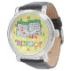 Bingo! Grüne und weiße Bingokarten auf Gelb Armbanduhr