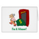 Die Frau, die einen Sack Geld zieht, während sie aus die Bingohalle herauskommt - Bingo - ich, sind ein Sieger!