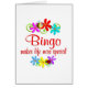 Eine Spaßweise, zu zeigen, dass Bingo Ihren Leben Special macht. Genießen Sie diesen bunten Entwurf mit Blumen, eine Biene und eine Damenwanze und die Wörter - Bingo macht das Leben spezieller.