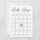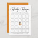 Niedliche Baby Dusche Bingo Spielkarte mit "Baby Bingo" oben in einem modernen schwarzen Drehbuch mit einer Aquarell-Abbildung eines Babywolfjungen, umgeben von Herbstlauben in Orange-, Rot- und Gelbtönen. als Zentrum Bingo-Spot. Personalisieren Sie mit der Mutter, um den Namen und Baby-Dusche Datum am unteren Ende. Das Design koordiniert mit unserer Niedlichen Baby-Duschkollektion von Woodland Animals.