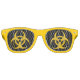 Warnsymbol für die gelbe Biogefährdung auf schwarzem Hintergrund.
