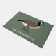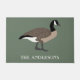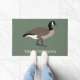 Herzlich willkommen auf Ihrer Zuhause mit dieser Türe. Die Begrüßungsmatte zeigt eine kanadische Gans in braunem, schwarz-weißem Set vor einem schlauen, grünen Hintergrund und ist bereit, mit Ihrem Namen unten in weißer Schrift personalisiert zu werden.