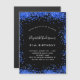 Ein mädchenhafter und trendiger 21. Geburtstagsparty-Magnet. Ein schicker schwarzer Hintergrund. Dekoriert mit königsblauen Imitaten Glitzer, Glitzern. Personalisieren und fügen Sie einen Namen und Party-Details hinzu. Der Name wird mit einem handgeschriebenen Stilskript geschrieben.