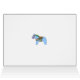 Diese Karte kombiniert Zeichnungen, Aquarellbilder und ein Holzpferd, das von Julia Persson-Morrill entworfen, geschnitzt und gemalt wurde