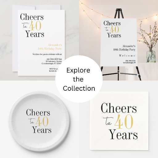 Das ist ein stilvolles, 40. Geburtstag Party Design mit einem einfachen, minimalen typografischen Design. Es ist in Schwarz/Weiß gehalten, mit einem Pop aus hellem Gold. Ideal für ein cooles und unterhaltsames 40. Geburtstag Party. Dieses Design ist vollständig anpassbar, verwenden Sie einfach die Personalisierung dieser Schaltfläche, um das Alter zu ändern, oder die Erholung des Textes, oder verwenden Sie das Editierwerkzeug, um die Farbe oder den Schriftart zu ändern. Wenn Sie Hilfe bei Personalisierung, passenden Produkten oder für ein individuelles Design benötigen, kontaktieren Sie mich über zazzle Chat.
