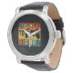 Uhr, Vintage Männeruhr mit schwarzem Lederarmband