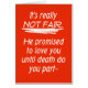 Jeder, der eine Scheidung durchgemacht hat, weiß, wie schmerzhaft sie sein kann. Es ist eine der Zeiten, in denen man wirklich lachen könnte. Diese lustige, sarkastische Scheidungskarte füllt diese Rechnung. Die helle orange-rote Karte hat große, fette weiße Buchstaben auf der Vorderseite, die sagen: "Es ist wirklich NICHT FAIR. Er hat versprochen, dich bis zum Tod zu Liebe, teilst du..." Dann sagt er im Inneren: "Und dann weigerte sich, DIE." Es ist dunkel, lustig, und es ist genau das, was der Arzt bestellt hat. Schicken Sie diese lustige Scheidungskarte an jemanden, der eine Trennung durchmacht, und bringen Sie ein bisschen Leere in eine schlechte Situation.