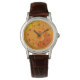 Uhr, Klassische Damenuhr mit braunem Lederarmband