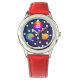Kinderuhr aus Edelstahl mit rotem Lederarmband