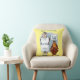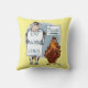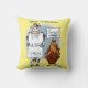 Ein Kissen mit einem lustigen Cartoon über eine Kuh und Truthahn, die mehr Huhn zu essen. Bild und Text können personalisiert sein.