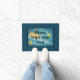 Bitte wischen Sie Ihre Füße cool blaue Tennishalle ab. Blauer oder benutzerdefinierter Farbhintergrund. Sportliches Design mit Teppichboden, Tennisplatz, Besen und Bälle. Ideal für Zuhause, Club House, Courts und vieles mehr.