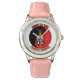Kinderuhr aus Edelstahl mit rosa Lederarmband