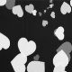 Create a romantic atmosphere in your space with this chic monochrome heart wallpaper. Delicate white hearts gracefully fall against a black background, adding the perfect touch to set the mood in your home.