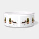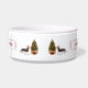 So eine niedliche Dackel in Schwarz und Bräune! Es ist für Weihnachten bereit, wie es neben dem Baum steht. Sie sind beide dekoriert - der Hund in einer Weihnachtsmannmütze und Krawatte und der Baum mit Ziern gefüllt! Perfektes Lieblingsgeschenk zum Weihnachtsversenden.