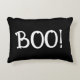 Der Hintergrund weist eine individuell anpassbare schwarze Vollfarbe auf. Halloween Dekorationsskissen für die Dekoration im Oktober. Sie können die "BOO!"-Typografie und die Farbe des weißen Schriftartes anpassen.