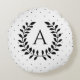 Black And White Laurel Monogram Polka Dot Pattern Rundes Kissen