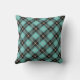 Stilvolles Kissen mit schwarzem und aqua diagonalem "lumberjack" kariertes Muster mit mattem goldfarbenem Gitterüberlagerungen.