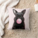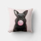 Black Bunny blasing Pink Blubble Gum Spielend Kissen