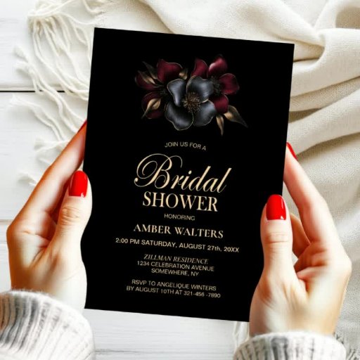 Lass deinen Freunden und der Familie mit dieser schwarzen Hochzeitskarte, die ein bordeauxrotes und graues Blumenmotiv rette, alles über deinen besonderen Tag im Stil. Die einfach zu bedienenden Vorlagen machen das Hinzufügen aller notwendigen Informationen zu einer schnellen und einfachen Aufgabe. Mit einer Vielzahl von Papiertypen und Eckstilen zur Auswahl können Sie wirklich einzigartige Karten erstellen, die Ihre Individualität widerspiegeln, sowie die Möglichkeit zum Download, wenn Sie ein digitales Format bevorzugen.