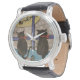 Vintage Männeruhr mit schwarzem Lederarmband