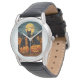 Uhr, Vintage Männeruhr mit schwarzem Lederarmband
