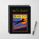 Eine individuelle Einladungsvorlage für Flyer, die Sie mit einer magischen, schwarzen Katze, die über einen blauen Himmel mit einem orangen Mond fliegt, anpassen können. Klicken Sie auf Anpassen, um die Schriftart zu ändern, die Größe zu ändern und das Design für später sogar retten.
