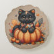 Black Cat on Pumpkin mit Herbst Quilt Muster Rundes Kissen
