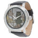 Uhr, Vintage Männeruhr mit schwarzem Lederarmband