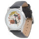Uhr, Vintage Männeruhr mit schwarzem Lederarmband