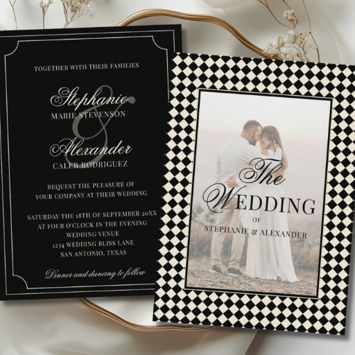 Share your appreciation with timeless elegance using this Vintage Black and Ivory Old Money Folded Wedding Thank You Card, designed for couples who value classic tradition, refined details, and understated luxury. Framed by a sophisticated harlequin-inspired checkered border in deep black and soft ivory, this design reflects heritage style with a clean, polished aesthetic.