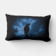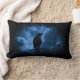Kissen mit einem Bild eines schwarzen Rabe in der Nacht auf einem Baumzweig mit Runen über dem sagt "schwarzer Rabe". Moody und mysteriös Erscheinungsbild.