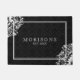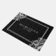 Elegant black damasks background with white floral lace on 2 corners and white line dual frame.