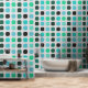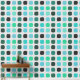 Dieses Design besticht durch ein modernes geometrisches Motiv mit schwarzen, dunkelgrünen, himmelblauen und türkisfarbenen abgerundeten Quadraten in weißer Farbe. Das Muster ist verziert und elegant und strahlt eine trendige Hipster-Essenz aus. Es ist ein raffiniertes und elegantes Design, das eklektisches Minimalismus repräsentiert, ideal für künstlerische Innenarchitekten, Wohngestaltung-Liebhaber, Trendsetter und Liebhaber Vintager, Retro- oder abstrakter geometrischer Muster. Dieses verzierte, aber trendige Hipster-Muster ist vielseitig und bietet eine Auswahl an zeitgenössischen Wohngestaltungen-Produkten, die die Atmosphäre verschiedener Räume wie Schlafzimmern, Küchen, Wohnzimmern, Grotten, Schlafzimmern für Unis, Eigentumswohnungen, Studios oder Appartements verbessern.