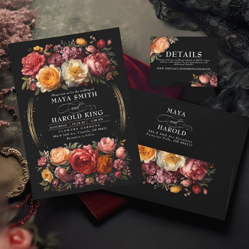 Botanical Floral Black Invitation CollectionDesignt von Gita ♡