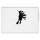 Ein schwarzer, fliegender Roboter. Kid ist Roboterkunst. Original Cartoon.