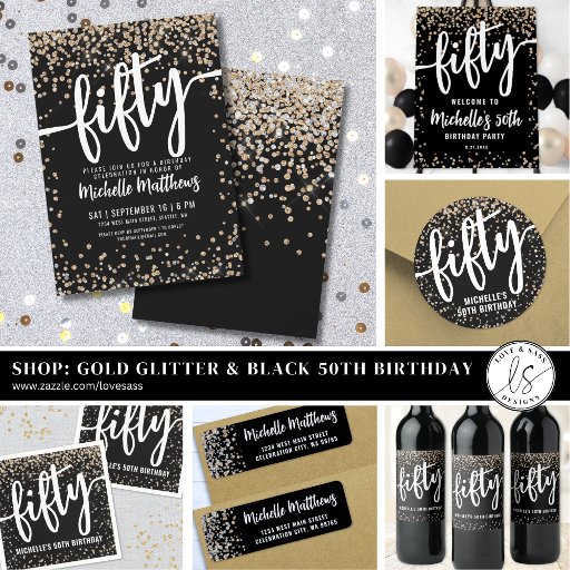 Black Gold Glitter 50th Birthday PartyDesignt von Jo P.
