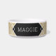 Gold-Glitzer und personalisierte Hundeschale mit einem kunstvollen Deko-Boho-Mashup-Design mit einem modernen geometrischen überlappenden abstrakten Zickzack Muster, wobei der Name Ihrer Katze oder des Haustieres direkt auf der eleganten Schüssel gedruckt wird.