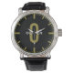 Vintage Männeruhr mit schwarzem Lederarmband