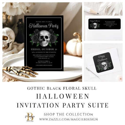 Black Gothic Floral Skull Halloween PartyDesignt von Maggie B Design